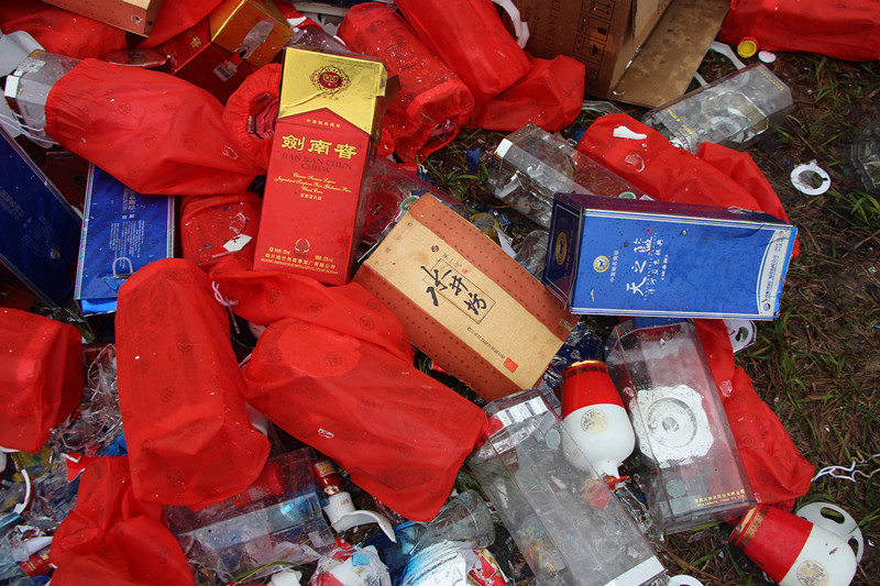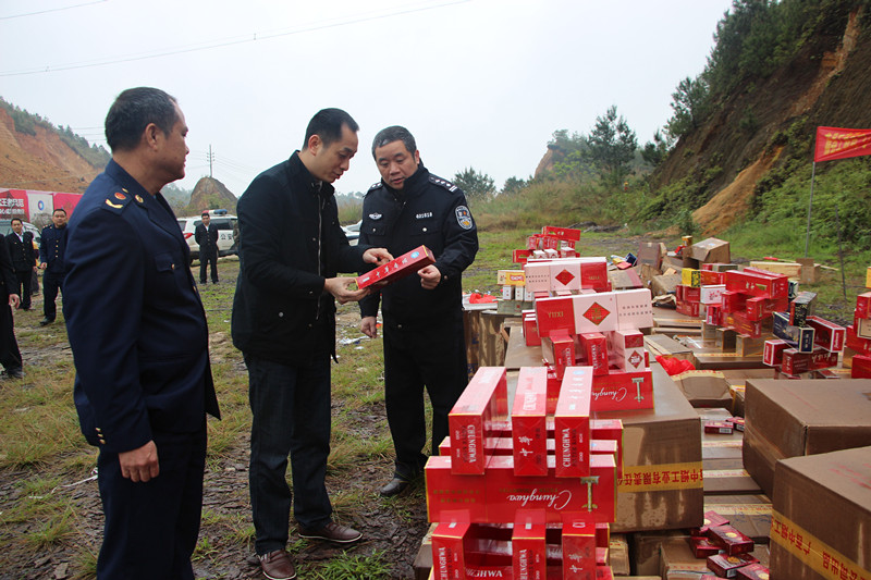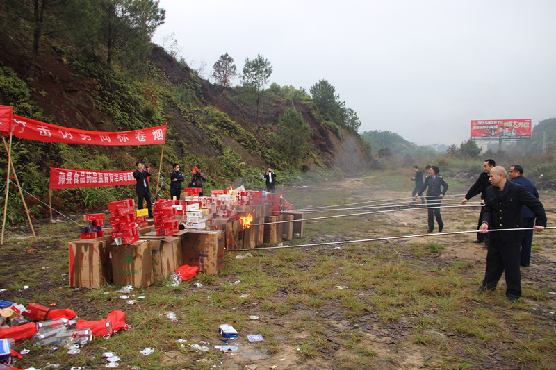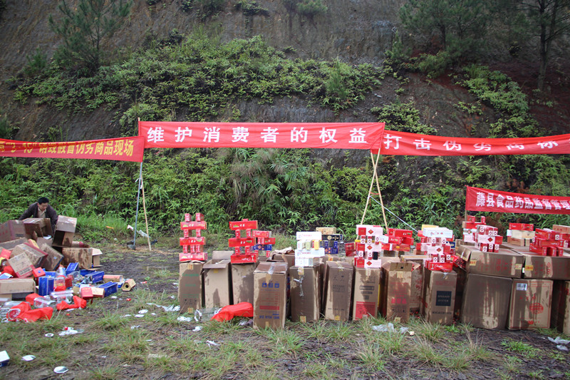 3月15日,藤县公安局联合工商、烟草等部门集中销毁了一批假冒伪劣产品,本次销毁的假冒伪劣商品涉及烟酒、药材等,案值40多万元。
