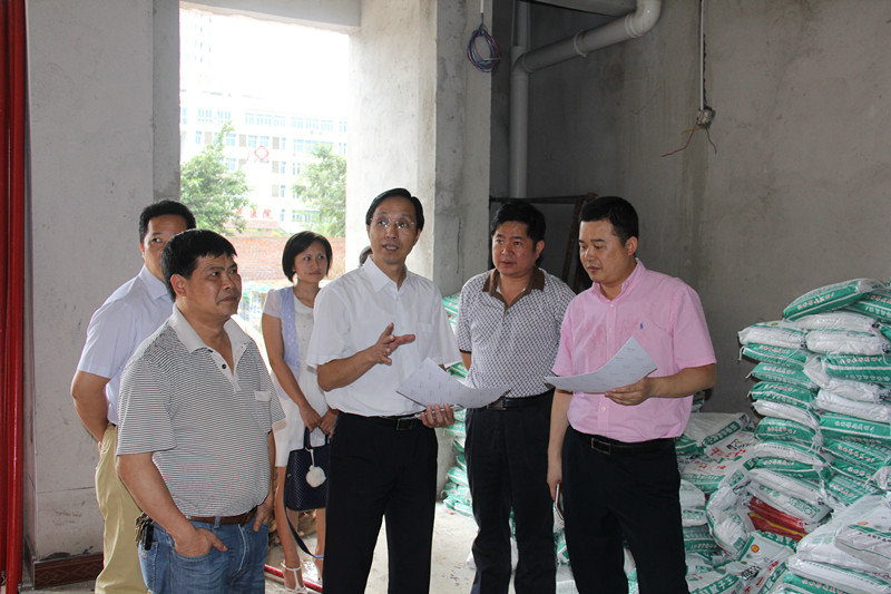 市司法局局长蒙华(左二)在我县司法业务用房大楼检查建设进度情况。