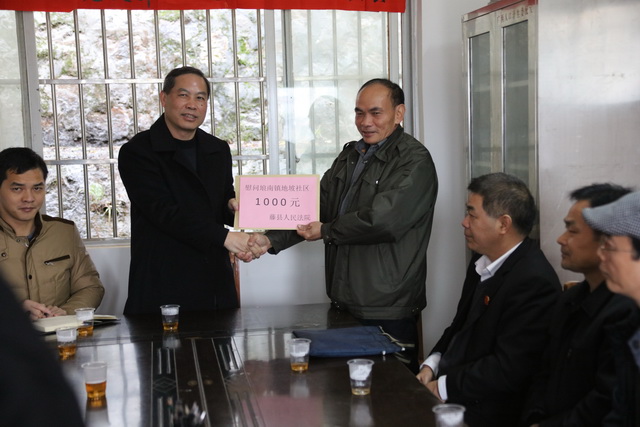 2017年1月15至18日,藤县法院党组书记、院长石忠贵与其他班子成员分别到挂钩联系的东荣镇夏垌村、象棋镇龙凤村、埌南镇大湴村、泗门村、界田村、冼村和地坡社区开展贫困村干部新春慰问活动,回顾总结2016年扶贫工作情况,积极谋划2017年脱贫攻坚工作。