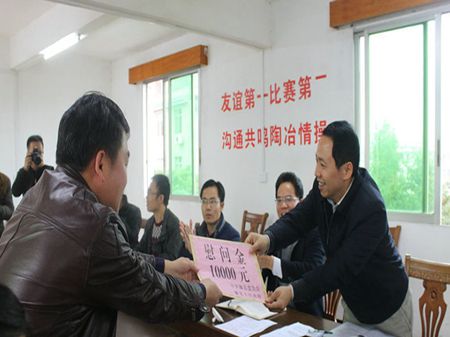 图为黄东明为藤县打违办送上慰问金
