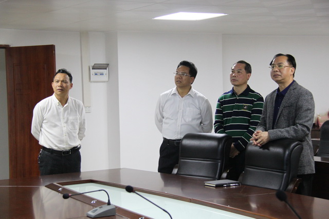 藤县县委常委、政法委书记何勇翔(左二)在参观执行指挥中心