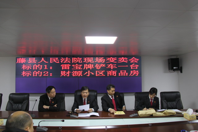 2017年3月15日,藤县法院执行干警在该院四楼后座第四会议室依法公开变卖坐落于广西藤县藤州镇安泰四街18号财源华苑1号楼第七层1-701号房屋,此次变卖采取现场报名交押金竞买方式,最终该套房屋以32.5万的价钱成功变卖。