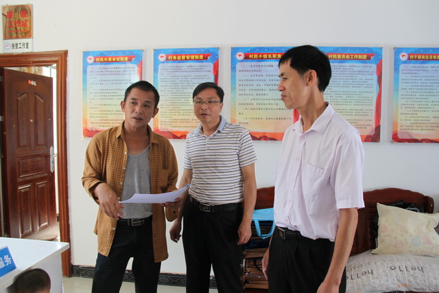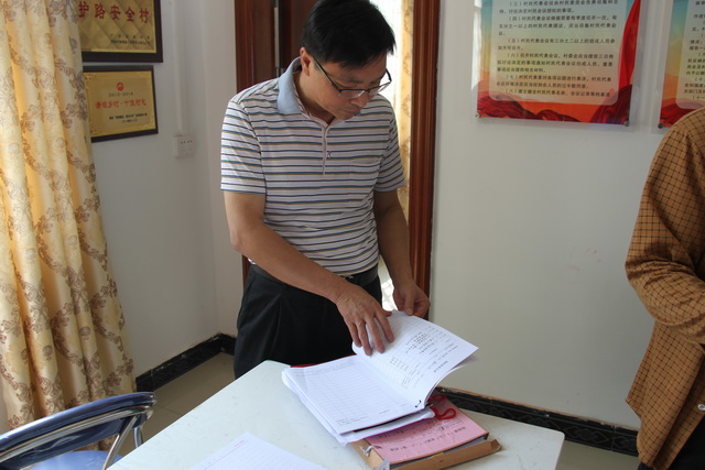 在泗门村村委,藤县法院纪检组组长苏植彬等一行四人详细了解该村2017年的扶贫进展情况,并检查该院干警填写的“一户一册”贫困户档案情况。督查组与村干部深入交流,并随机走访贫困户,调查核实该院干警在帮扶过程中是否存在思想、作风、纪律等方面问题。令人欣慰的是,村干部和群众都充分肯定了藤县法院帮扶干警的付出,明确表示该院干警不存在思想不端正、作风散漫、违法违纪等问题。