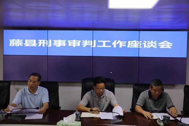 为进一步适应司法体制改革新形势新要求,7月27日,藤县法院邀请藤县公检司相关部门负责人,就如何加强办理刑事案件协调配合、组织监督、研究分析和实践中遇到的疑难、复杂、普遍性问题展开座谈。藤县县委常委、政法委书记何勇翔,藤县法院党组书记、院长石忠贵,公安局副局长韦飘光、黎德萍,检察院副检察长韦焕成,司法局副局长钟旭培等人参加了座谈会。