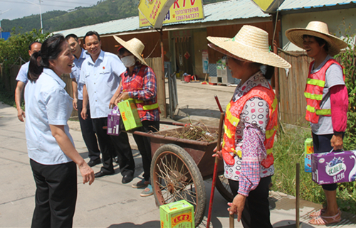 活动中,高云副院长向地坡社区和泗门村的保洁员致以亲切的问候和慰问,并详细地了解保洁员们的工作和生活情况。高云副院长指出,近年来埌南镇村(社区)的环境面貌得到了很大改善,生活垃圾得到了有效处理,山变得更清,水变得更秀,这些喜人的成果离不开保洁员们的辛勤劳动和付出。高云副院长对保洁员们不畏辛苦,顶着烈日坚守岗位,为“美丽藤县.生态乡村”而默默无闻做出贡献表示感谢和点赞,并叮嘱他们要提高防护意识,确保高温时段生产安全和身心健康。