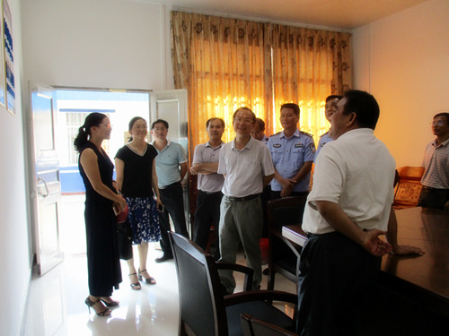 藤县政协主席刘敬堂(左五)在了解藤县法院交通巡回法庭工作情况