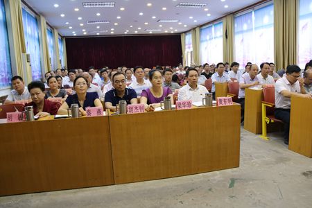 图为县四家班子领导成员、各乡镇、各部门单位领导在专心听课