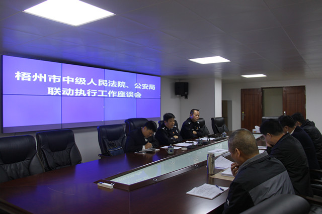 为充分发挥人民法院、公安机关各自职能,强化协作联动,破解“执行难”,提升司法公信力,11月20日,梧州市中级人民法院、梧州市公安局在藤县法院召开执行工作联席会。市中院执行局长钟涛,市纪委派驻市公安局纪检组组长、党委委员、纪检书记郑勇,市公安局警务督察支队支队长梁德森出席会议,藤县法院党组成员、副院长高云以及党组成员、执行局局长黄云杰等人参加会议。