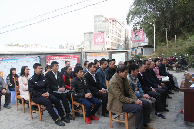 藤县宣讲团成员、藤县法院审委会专职委员何玲(第一排右一)到埌南镇地坡社区宣讲十九大精神