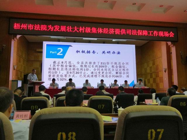 9月28日,梧州市法院为发展壮大村级集体经济提供司法保障工作现场会在苍梧法院召开,藤县法院党组书记、院长石忠贵,以及党组成员、副院长高云、民一庭庭长江萍出席会议。会上,苍梧法院、藤县法院和岑溪市法院先后在会上作经验交流发言。