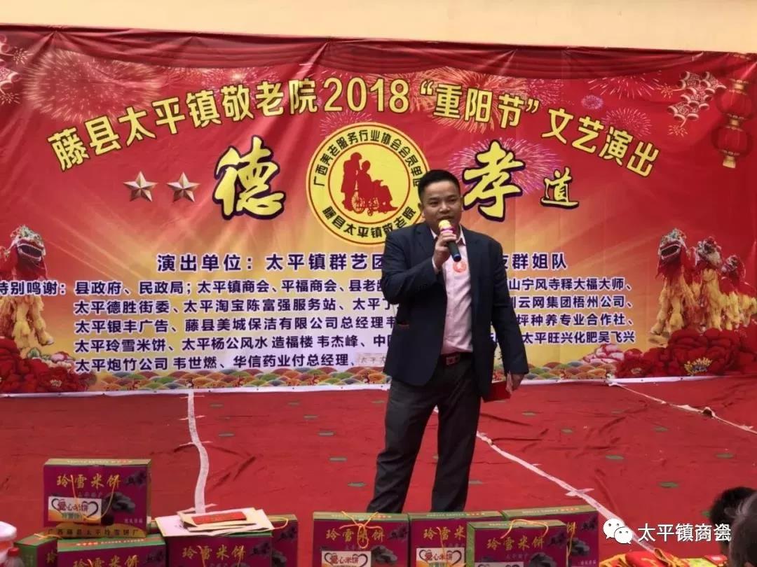 2018年10月17日(农历九月九),重阳节是中华民族的传统敬老节,不忘初心,当天上午,太平镇商会谢会长、党支部覃书记及部分会员们一起到太平镇敬老院给老人家们送上心意礼品、慰问金及祝福。