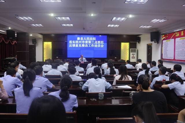 11月6日,为切实贯彻落实梧州市委第三巡察组反馈意见,藤县法院召开落实整改工作动员会,该院党组书记、院长石忠贵及全体干警参加了会议。