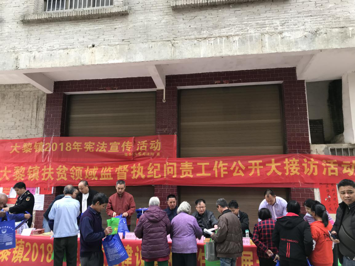 12月5日,藤县大黎镇政府在大黎街道开展2018年下半年扶贫领域监督执纪问责公开大接访活动。大黎镇纪委书记、以及镇危改办、镇民政办、镇直各单位领导及工作人员都参加了此次接访活动。