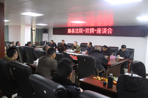 121日,在新春佳节来临之际,藤县法院召开“双拥”工作座谈会, 12名已退休和9名在职的退伍军人欢聚一堂,重温峥嵘军绿生涯,畅谈法院的“昨天、今天和明天”。院党组书记、院长石忠贵主持会议。