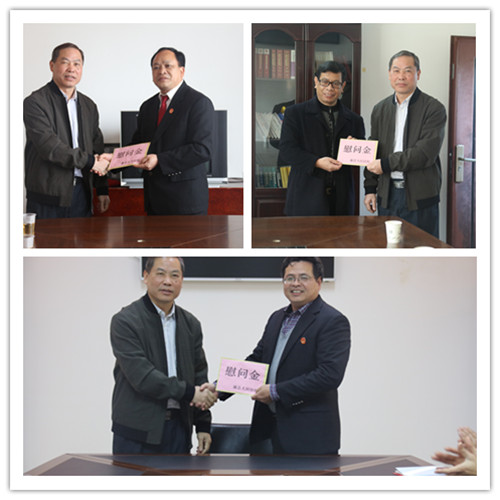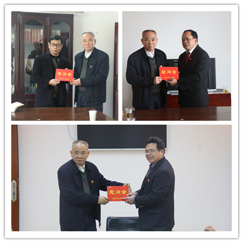 黄炳雄一行先后到潭东法庭、濛江法庭以及太平法庭进行了走访慰问。在慰问过程中,黄炳雄深入了解各庭2018年收结案、队伍建设以及法庭安保等情况。黄炳雄指出,一年来,法庭干警在藤县法院党组的正确领导下,较好地完成了各项审判工作,积极化解了辖区各类矛盾纠纷,大力服务辖区经济发展,为辖区的和谐稳定提供了强有力的司法保障,得到了上级领导以及人民群众的充分肯定。黄炳雄要求,在新的一年里,法庭干警要再接再厉,用习近平新时代中国特色社会主义思想武装头脑,充分发挥审判职能,打通服务人民群众的“最后一公里”,进一步提升辖区的群众安全感和满意度,努力实现“让人民群众在每一个司法案件中感受到公平正义”的目标。最后,黄炳雄代表市中院党组为法庭干警送上慰问金以及新春祝福,祝愿法庭干警在新的一年里工作顺利、身体健康、阖家幸福。