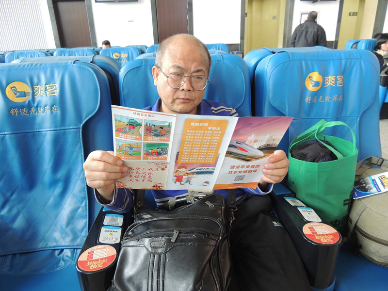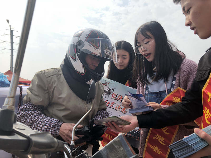 “这是我们的宣传资料,不仅有扫黑除恶的,还有反邪教的,爱路护路的…请您看一下,了解多方面的知识,也带回家给老人孩子看一下,祝您一路平安,合家团圆,过个好年!”工作人员和志愿者对每个途经春运服务站的骑行人员一遍遍重复道。