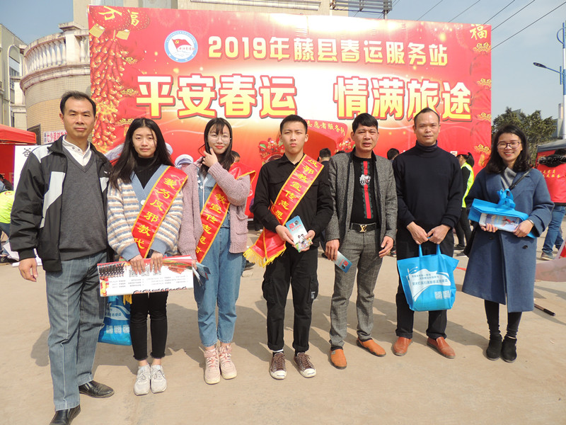 当天早上,藤县政法委副书记黄达光与大学生志愿者来到熙来攘往的藤县春运服务站,为“铁骑大军”送上政法宣传大礼包,向返乡人群发放宣传年历、宣传环保袋以及图文并茂的小册子、海报、手册,宣传扫黑除恶、反邪教、爱路护路知识,讲解有关安全知识,发动他们检举违法犯罪行为,教育家中的老人孩子远离违法犯罪活动,共同守护美好家园,并提前给返乡人员送上春节祝福。