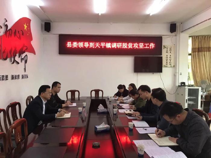 3月19日,县委副书记何勇翔到天平镇调研脱贫攻坚工作,详细了解义务教育、基本医疗、住房安全等各项指标情况,研究部署下一步工作。他强调,要坚定信心不动摇、咬定目标不放松、整治问题不手软、落实责任不松劲、转变作风不懈怠,全力以赴完成脱贫攻坚各项目标任务。