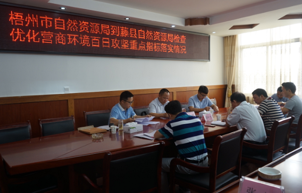 近日,梧州市自然资源局到我县检查优化营商环境工作。