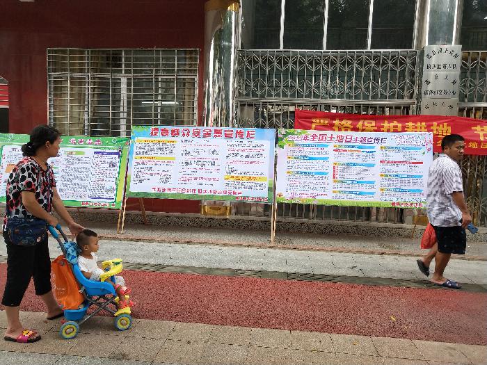 6月25日,在藤县自然资源局大门口,来来往往不息的人们不时驻足观看陈列在人行道旁边内容丰富,色彩艳丽的宣传栏,原来是被宣传栏里面图文并茂的“严格保护耕地