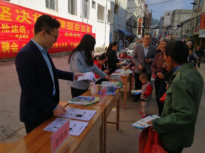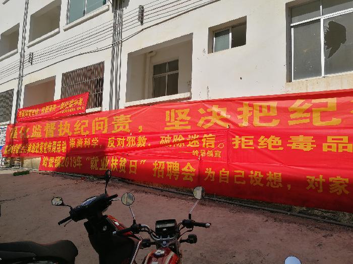 为了更好地发挥政府和项政策的宣传效益,2019年10月29日,岭景镇政府多个部门在政府大楼外街道举行联合宣传活动。此次宣传活动函括扫黑除恶、禁毒、反邪教、群众安全感、反贪反腐、社会救助、扶贫招聘等内容。