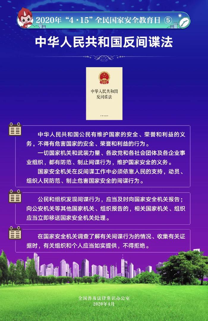 全民国家安全教育日(National Security Education Day)是为了增强全民国家安全意识,维护国家安全而设立的节日。2015年7月1日,全国人大常委会通过的《中华人民共和国国家安全法》第十四条规定,每年4月15日为全民国家安全教育日。