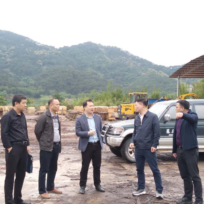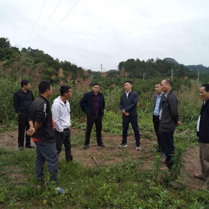 图为:王忠诚(右二)、莫德锦(右一)在陈金生(右三)陪同下到隐患点调研