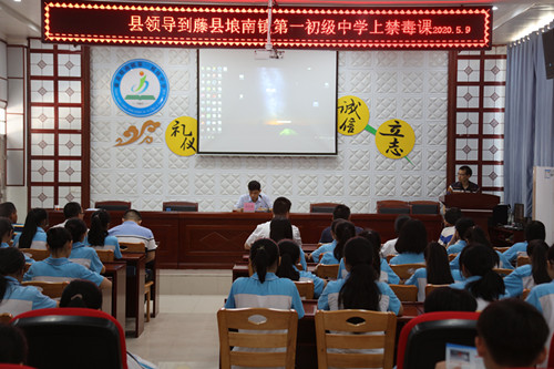 5月9日上午,藤县人民法院党组书记、院长吴汉北到埌南镇第一初级中学,为该校180多名师生上好“禁毒第一课”,引导青少年学生珍爱生命、远离毒品。