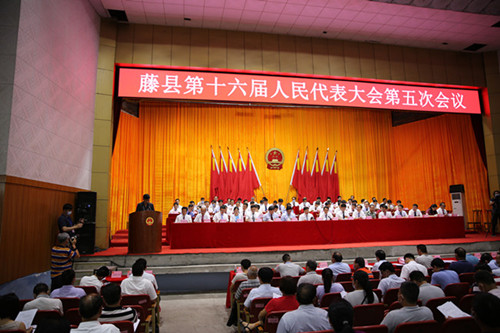 5月28日,在藤县第十六届人民代表大会第五次会议上,藤县人民法院院长吴汉北向大会作工作报告。
