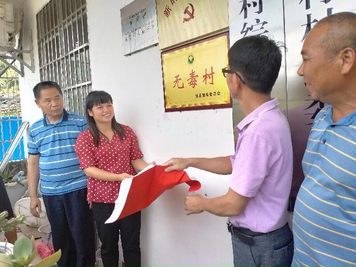 为了更有效推进岭景镇禁毒工作的开展,7月1日上午,岭景镇人大主席梁胜荣、副镇长陈筱瑜到都蒙村指导禁毒工作并举行“无毒村”光荣牌揭牌仪式。