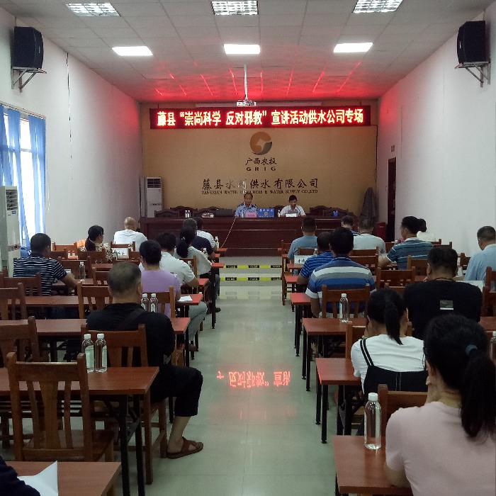 近日,藤县县委政法委联合县科技协会到藤县水利供水有限公司上了一堂交通安全、禁毒、反邪教、科普知识课,县委政法委副书记李伟明阐述了什么是邪教、邪教的种类、邪教的危害以及怎样识别邪教、如何防范与抵制邪教,同时通过发放宣传资料进行宣传。使企业干部、职工进一步认清邪教的本质,拒绝邪教、远离邪教,崇尚科学、珍爱生命,不被邪教组织蒙蔽双眼,提高识别邪教、防范邪教意识,抵制邪教的能力,树立正确的人生观、价值观、宗教观、民族观、世界观,切实维护政治稳定、国家长治久安、人民安居乐业。宣讲活动收到良好宣传效果。