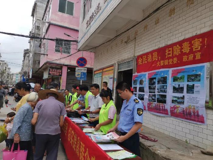 大黎镇坚持以党建为引领,积极探索“党建+扶贫+禁毒”工作模式深入开展禁毒严打整治攻坚战。用党建指导禁毒工作开展,紧紧围绕“人、毒、贫”三要素整体发力,把禁毒扶贫工作作为助力脱贫攻坚战的坚定行动,充分发挥部门和行业优势协同作战,将禁毒的主责主业扛在肩上、放在心上、抓在手上,凝聚禁毒合力,实现基层党组织建设和禁毒工作及脱贫攻坚工作统筹推进、合力攻坚。