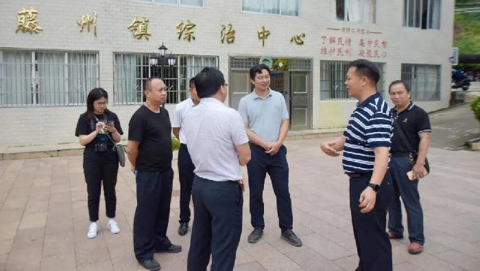 9月24日上午,梧州市公安局党委委员、副局长孙有昌率梧州市易肇事肇祸精神病人管理工作组一行到藤州镇调研,藤县县委常委、政法委书记莫德锦、藤州镇党委书记梁志庆陪同。