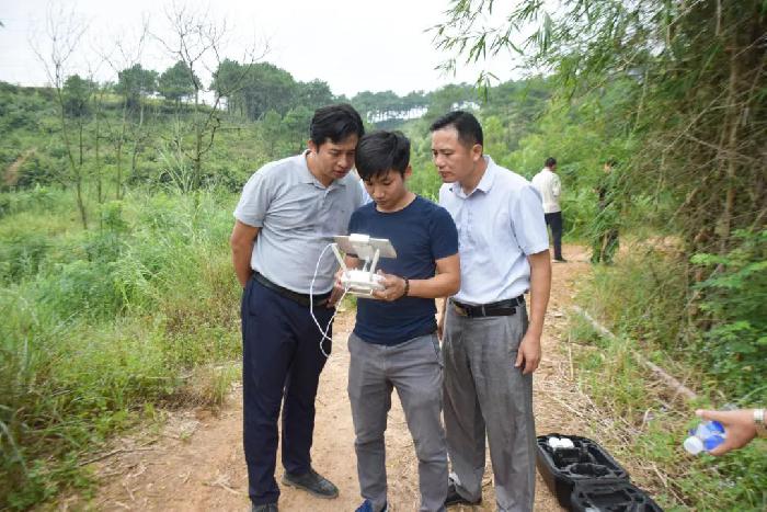 ▲梁志庆同志指导工作人员利用无人机巡查潭东村
