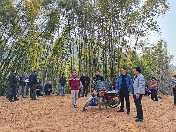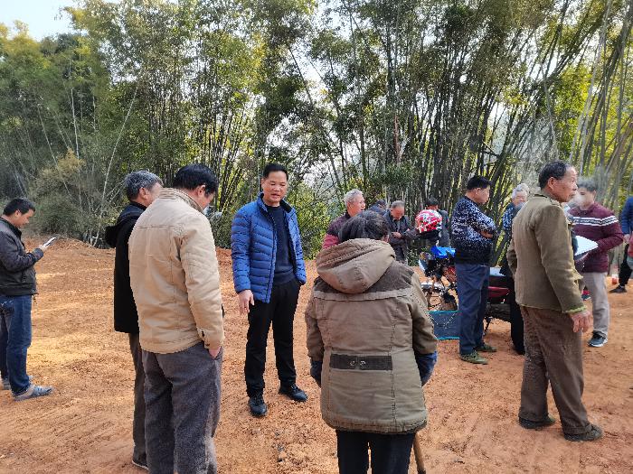 ▲图为藤县总工会党组书记、常务副主席廖杰在丽新村丽山一组协助推选活动现场