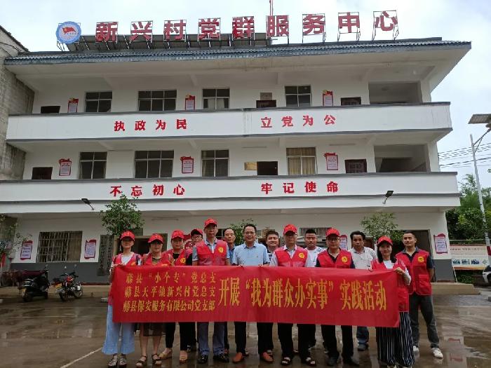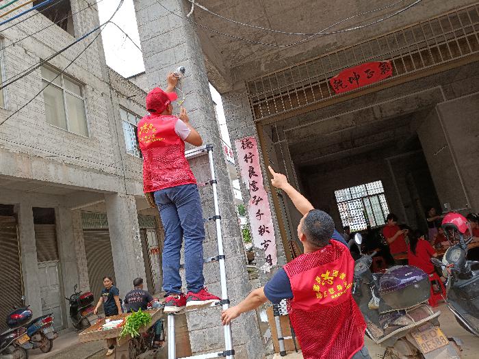 5月18日上午,藤县“小个专”党总支、天平镇新兴村党总支和藤县保安服务有限公司党支部的党员组成志愿者服务队开展“我为群众办实事”实践活动,为天平镇新兴村易地扶贫搬迁集中点免费安装“安家卫士”摄像头5个,让村民能够更安心地在当地企业上班,更好促进当地经济发展。