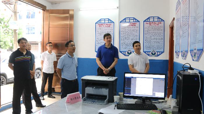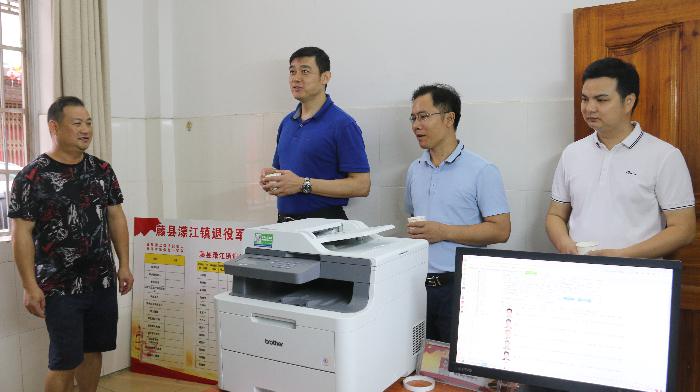 彭军(左二)到濛江镇退役军人服务站指导退役军人服务工作