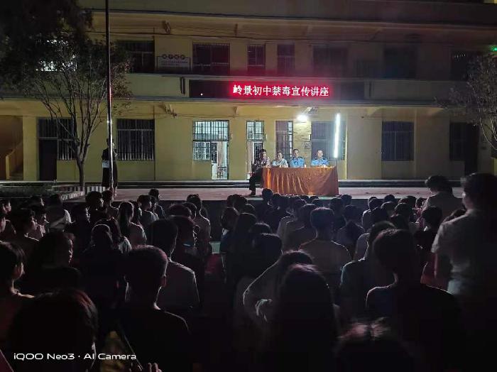 岭景镇组织委员区华勇、派出所所长吴宏超和全体师生一同学习毒品预防教育方面的有关知识,详细讲解毒品种类和它的严重危害性,从而提高警惕,远离毒品,健康成长。鼓励同学们积极参与和支持禁毒宣传、预防教育和防范工作,勇于与毒品违法犯罪做斗争。同时为进一步推进法制宣传教育,增强青少年学生的法制观念,有效预防违法犯罪。法治讲座上,吴所长结合自己多年法制教育工作中的经验,从“法律知识"介绍、如何“用法律武器保护自己"等几个方面,对当前新形势下青少年应该掌握的法制知识进行了详尽讲述。深入剖析了未成年人犯罪的特点和主要原因,教育学生要提高自我防护意识,提高自我保护能力,告别不良行为、远离毒品。同时对邪教的性质和危害进行讲解,呼吁老师们、同学们积极反对和抵制邪教。面对邪教时,要增强自身防范邪教能力要态度坚决,表明立场,决不上当受骗,其次要严厉指出其行为是邪教违法活动,劝其迷途知返,必要时可以向公安机关报警。当发现邪教宣传品,要不信、不传,立即报告或将其销毁,或送村(社区)委会、派出所,防止其流向社会。