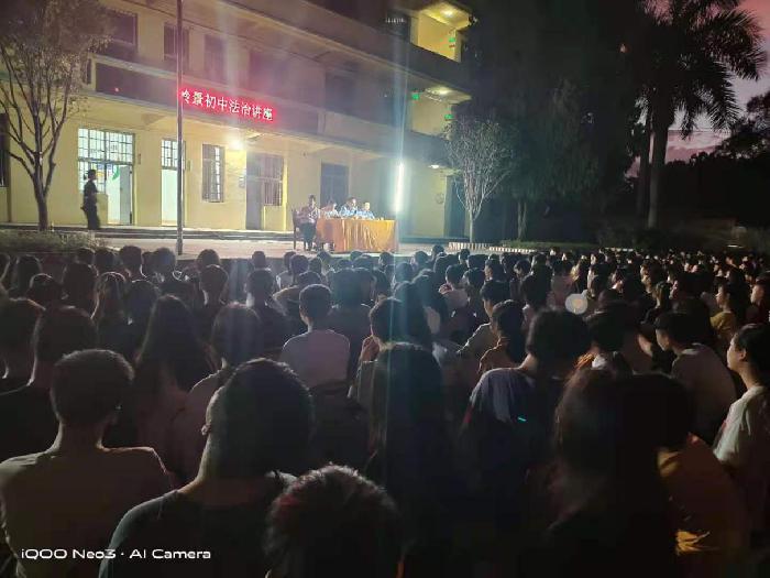 2021年5月27日晚岭景镇组织委员区华勇、派出所所长吴宏超到岭景初中宣传法治、禁毒、反邪教讲座。