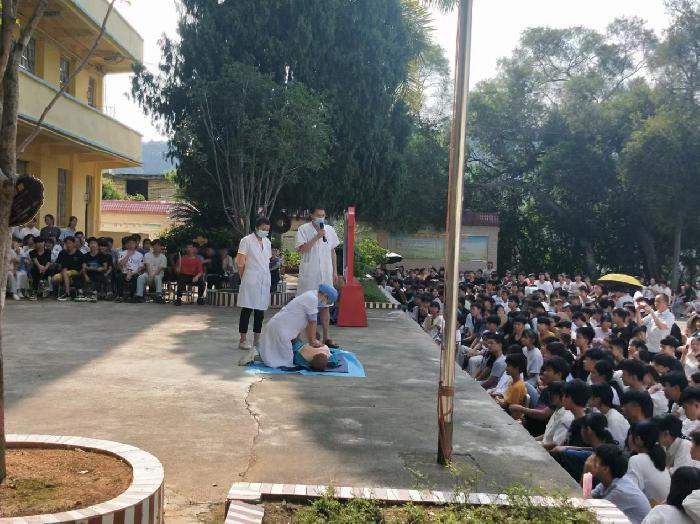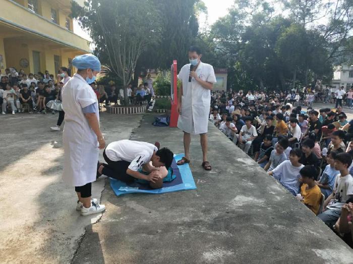 学校一直都是防溺教育的重中之重,为强化学生的安全教育,增强安全防范意识,常握防溺水知识技能,提高自救互救能力,筑牢安全防线,6月3日,镇党委、政府组织卫生院医护人员到岭景初中宣传预防溺水安全知识,活动中学校领导首先强调了学校纪律,学生不能私自到周边河流、水库、池塘等水域游水或钓鱼,同学们不但要自我约束,更要成为防溺安全教育的宣传者。接着卫生院的医护人员通过近期周边地区发生的学生溺水事故为例,警戒同学们生命只有一次不能因为一时的放纵造成悲剧的发生。最后医护人员着重教导了同学们意外落水自救和遇到溺水者施救方法和步骤,在医护人员示范了胸外压以及人工呼吸的正确手法后,学生们踊跃上台参加实践。