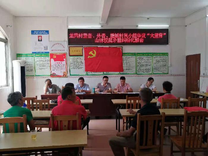 2017年,藤县象棋镇龙凤村里杏、外杏、塘城三个村民小组之间因大屋背山林的权属发生纠纷,藤县人民政府于2017年、2018年分别对大屋背山林权属纠纷案作出了处理决定,且制作了该山林《权属界线图》。当事人在经营管理上述山林时,双方对所划定的界址再次产生争议,矛盾正在进一步激化。获知该情况后,藤县自然资源局领导高度重视,由藤县自然资源局罗卜忠副局长(挂职)带领自然资源调查、监测确权登记管理股工作人员,汇同藤县林业局、象棋镇人民政府组成工作组主动到象棋龙凤村委、大屋背山林(争议地)对该纠纷案进行现场调处化解工作。通过耐心听取各小组组长、代表的意见及诉求后,针对争议焦点,快速制订纠纷调处化解工作方案,并详细解释如何解决该争议的方法和具体意见。随后向纠纷当事人宣传法律、法规、政策。使其晓知于理,动之于情。正确引导当事人走依法维权途径,有理有据、合情合理提出土地权益诉求。
