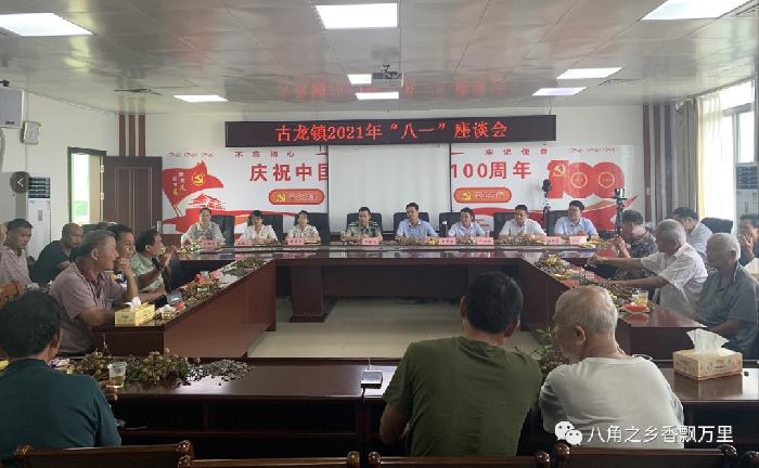 7月28日,在中国人民解放军建军94周年来临之际,古龙镇召开2021年“八一”建军节座谈会,邀请镇内退役军人代表、现役士兵家属代表和军烈属代表等欢聚一堂,同庆建军佳节,共叙鱼水深情。