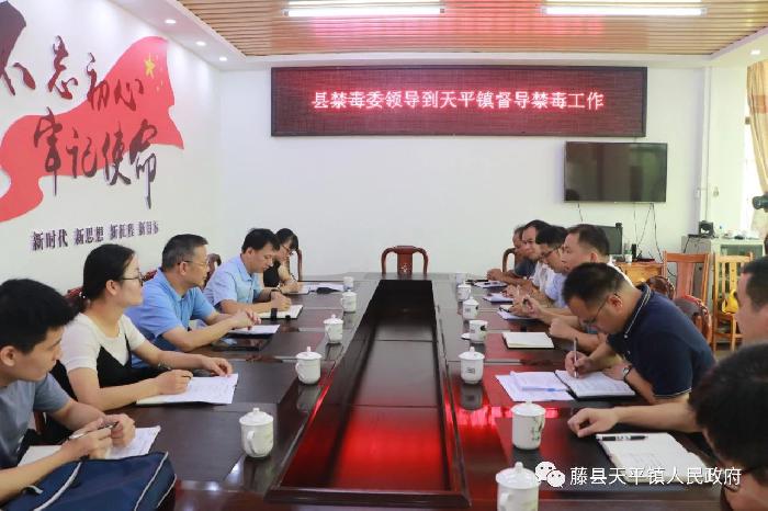 8月13日,县委常委、政法委书记于新率督导组到天平镇督导禁毒工作。督导组通过座谈会、实地调查、查阅台账等方式督导天平镇禁毒专项整治工作,镇党委书记陈金生,镇党委副书记、镇长张伯华,镇人大主席黎咏东,镇政法委员、武装部长朱奇振及相关部门负责人陪同。