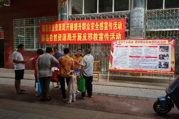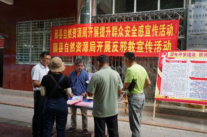 为有效提高广大群众对平安建设、反邪教及反诈骗等工作的支持率和参与率,9月24日,藤县自然资源局在局门口开展提升群众安全感满意度暨反邪教宣传活动。
