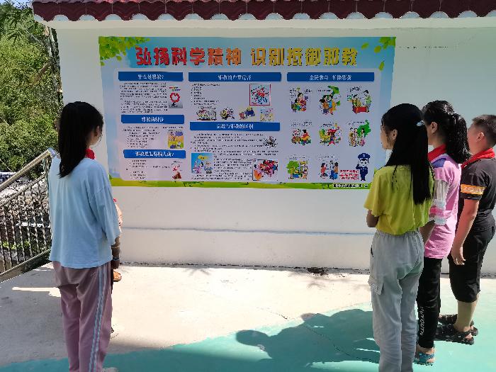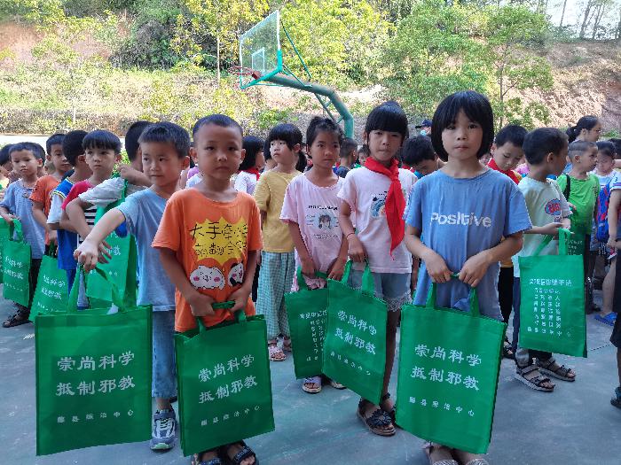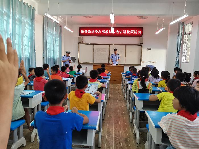 县司法局宣传员现场宣讲反邪教知识,向学生们讲解什么是邪教、邪教的本质与危害和骗人手法,教育学生们不要相信邪教、不参与邪教活动,自觉抵制邪教,引导同学们向家长宣传反邪教知识。