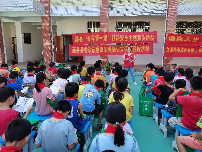 为提高学生们的铁路护路知识、交通安全知识、反邪教知识,9月28、29日,县委政法委联合梧州南站派出所、县司法局、天平镇政府到天平镇回龙小学和民益小学开展系列宣传活动。