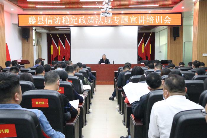 为进一步提升全县信访工作水平,深入推进信访稳定政策法规宣传教育工作,12月15日,藤县召开信访稳定政策法规专题宣讲业务培训会。县委常委、政法委书记于新参加培训会并作讲话。