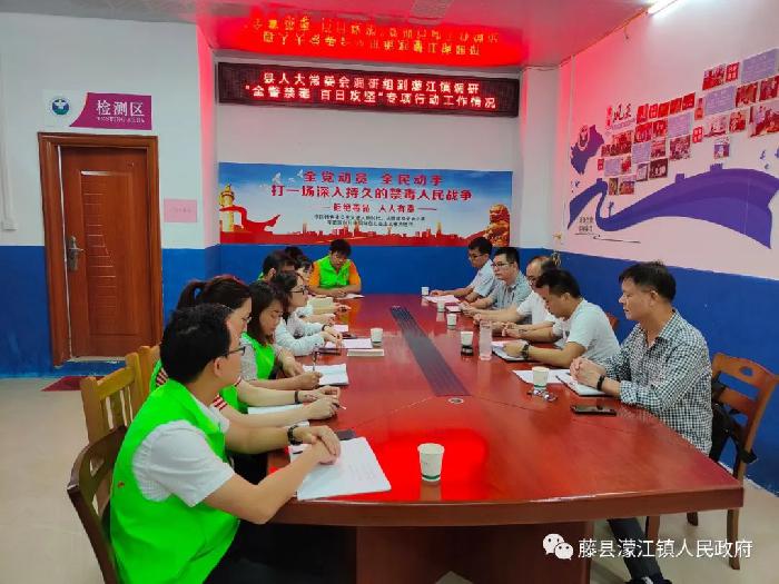 调研组通过听取汇报、座谈交流等方式,详细了解了濛江镇当前的禁毒工作成效、工作方法、存在的困难。在充分肯定工作成绩的同时,就禁毒宣传教育、吸毒人员管控等工作进行深入交流,广泛征求意见和建议。