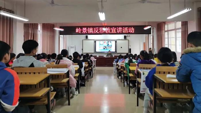 4月18日,镇党委政法委员高嘉振到岭景初中开展反邪教、防范网络诈骗、禁毒宣传进校园活动。给师生们上一堂生动的“抵制邪教,远离毒品,珍爱生命,共建和谐校园”宣传教育课,让同学们认识到毒品、邪教组织对生命健康、家庭生活、社会和谐以及国家安全的严重危害,引导他们增强识别毒品、抵制毒品和邪教的意识,提高自我保护能力。