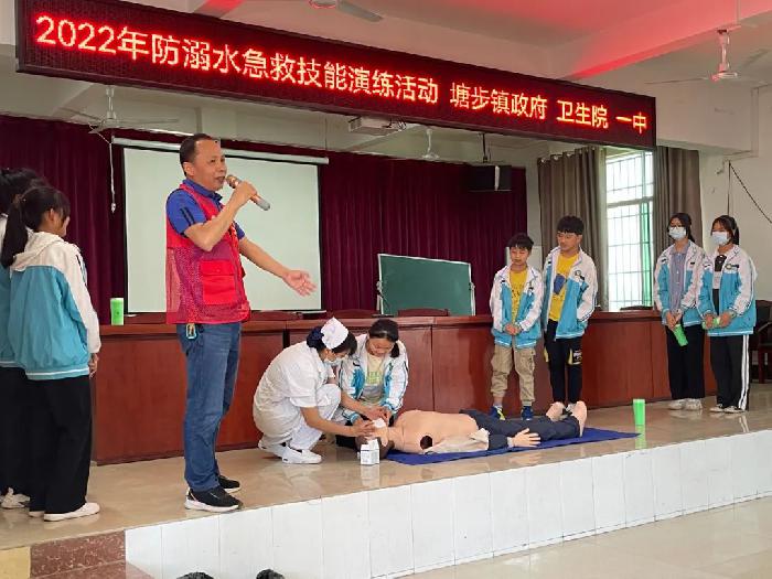 生命是一条单行线,它一去不返;生命是一本绝版书,它美好而又宝贵。为提高师生的安全防范意识和认识灾难、自救、自护的能力,从容应对防溺水等突发事件,5月18日,塘步镇政府组织镇卫生院、镇一中和镇中心校分别开展防溺水应急演练活动,副镇长刘冬梅出席活动并讲话。